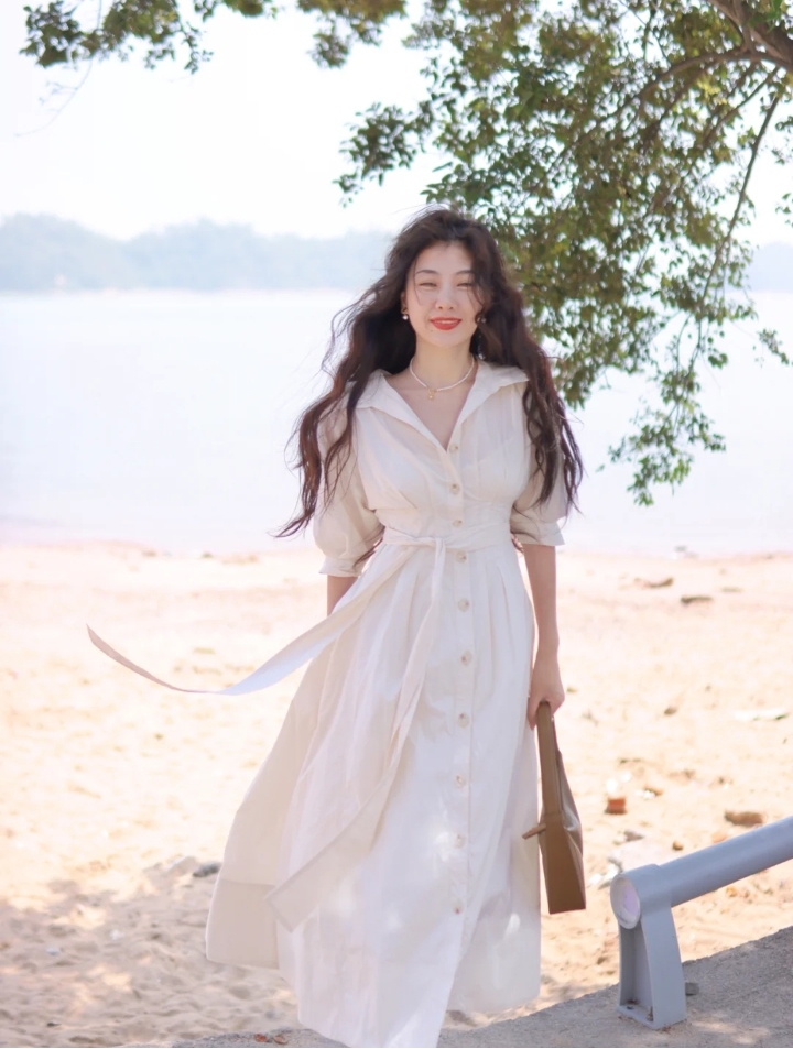 越简单的服装越不容易过时,同样很容易穿出来高级感。如果想要穿出来法式的优雅感,那么一定要看看这条白色的连衣裙。这条连衣裙真的是绝绝子,说是仙女穿的裙子也不为过。长度在脚踝上方,能够很好地遮住小腿上肉肉,就算是腿型不好看,或者是肌肉腿的姐妹也不用担心,完全可以放心安排。