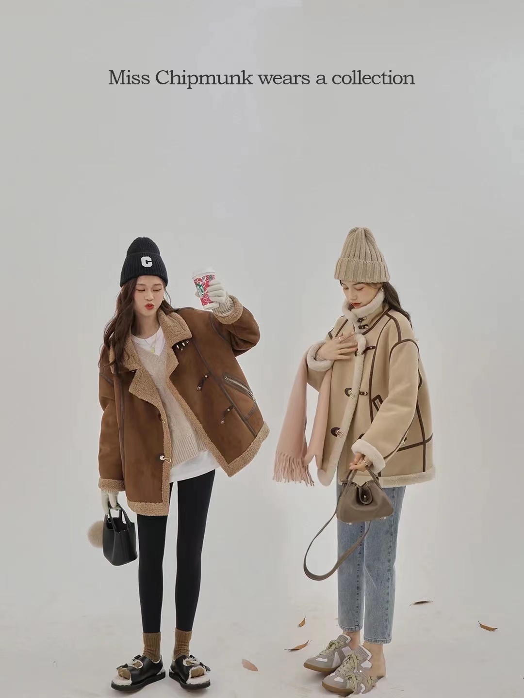 皮毛一体的机车风短外套,自然是厚实抗风的。这种直筒型的短外套,也是稍微宽松的版型,不仅适合小个子穿着,对于微胖身材的姑娘,也有一定的包容性。可以掩盖体型的不足,整体风格大方高级。
