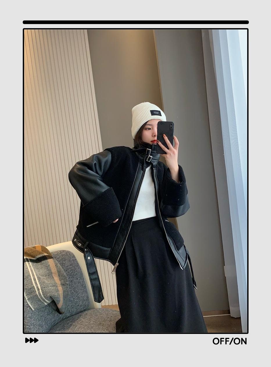 这件机车夹克是那种帅气中带着一点点可爱,版型还宽松的廓形,一点也不挑身材。外面加绒内里加棉,穿起来再也不怕降温了。