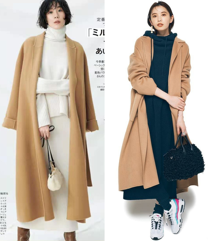 这个色调的大衣也是秋冬基本款,中性化的色调,给人一种温暖安心的感觉。想把驼色大衣穿出温柔感,搭配米白色的高领毛衣和半裙,简约又优雅,很适合上班族。