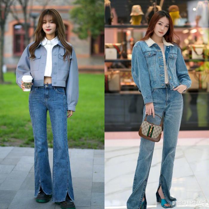 若你的腿部赘肉多,或是小腿肌肉明显,不妨多尝试一下“阔腿”开叉裤或是开叉“喇叭裤”。阔腿裤开叉裤既能遮住腿部赘肉,轻松打造出显瘦的效果。而开叉喇叭裤的裤腿“上窄下宽”,能一键解决小腿肌肉明显等问题,同时修饰腿型,显腿细效果十分明显。