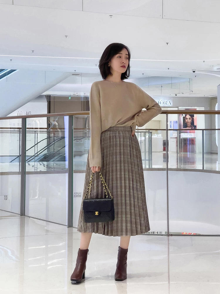 第四种是方格的半裙款式,简洁雅致的格子裙,有一种小女孩的可爱天真,适合俏皮、淑女或者是青春活力的小仙女作为穿搭的对象,纯真洋溢着生活的热情。格子裙就是年轻小姐妹的选择,在冬日街头随处可见。