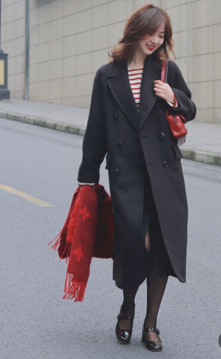 这个小个子博主选择黑色大衣搭配黑色丝袜,性感中不乏时髦的气质,而且黑色丝袜看起来特别轻盈,能修饰我们下半身的比例,对于腿粗的姐妹来说也是值得借鉴的。黑色丝袜还挺性感的,搭配黑色皮鞋,简单大气,轻轻松松体现你的魅力。