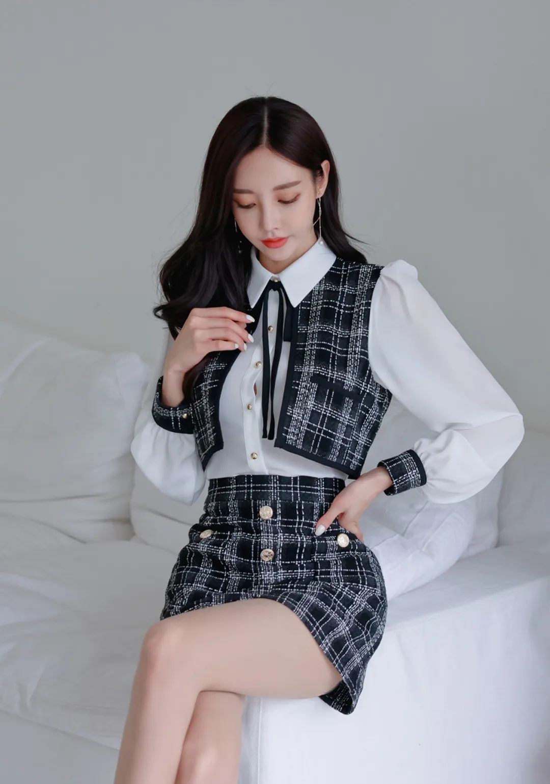 孙允珠每日一珠 孙允珠黑色格纹夹克+超短迷你裙 身材火辣让人发硬(3)