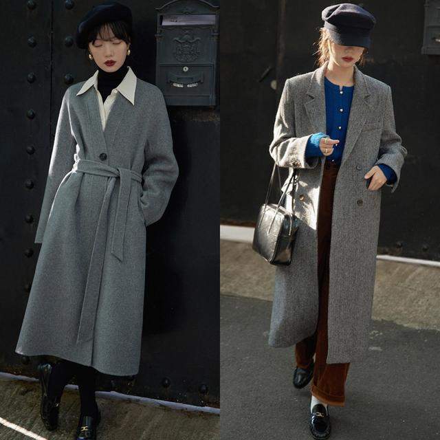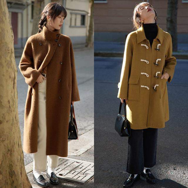 立领大衣看起来比较利落,而翻领大衣则比较学院风;经典黑纽扣看起来比较整齐,而牛角扣子更具氛围感。