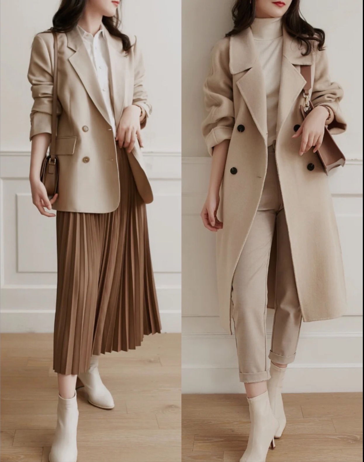 这种带有褶褶的百褶裙走起路来灵动飘逸,还带有一些俏皮和减龄,时尚感十足。微胖女生可以挑选褶褶细密的款式,修饰效果更佳。用它来搭配大衣西服通勤气质,浪漫还高级!30+女人的通勤气质穿搭,简约大气,满满的高级感!