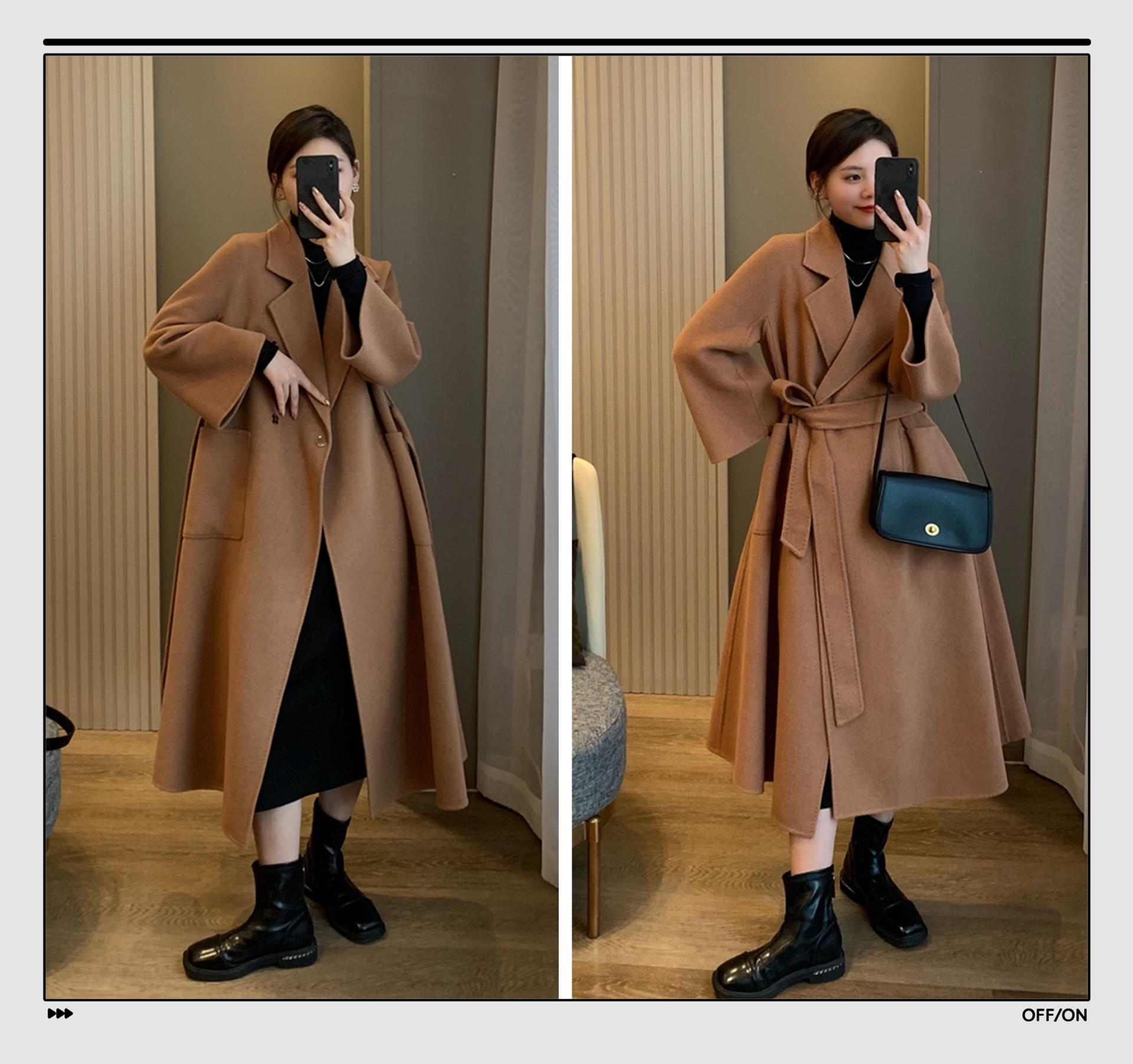 这是一件浴袍式的大衣,我感觉系上腰带时比不系更有范,你觉得呢?