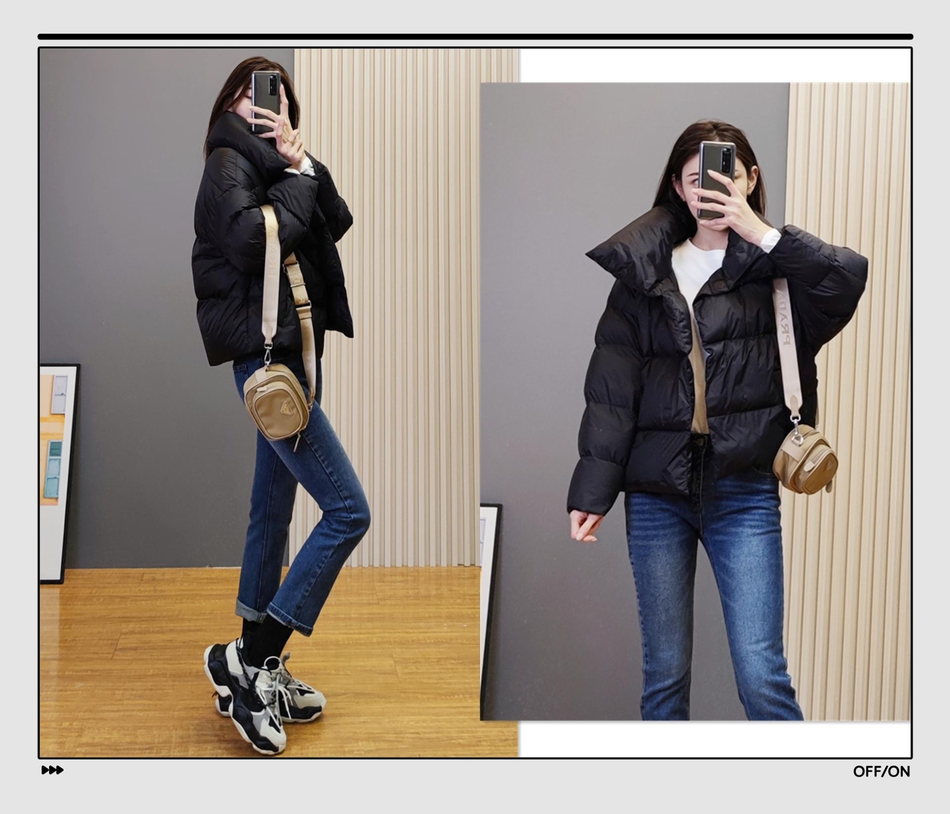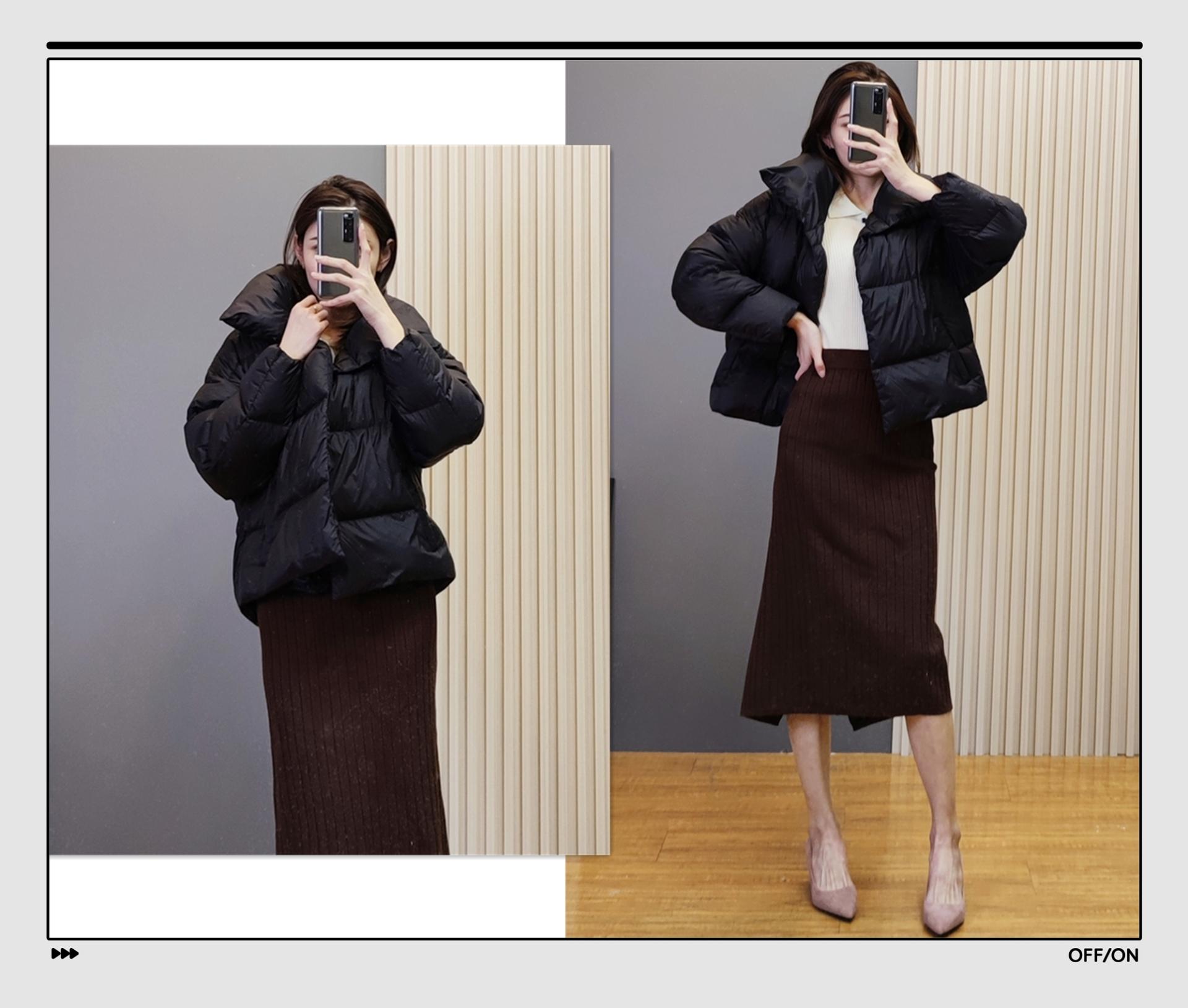 拥有蓬松质感的短款羽绒服,看起来很容易显矮显胖,所以我专门选了黑色,起码能收缩一下视觉。