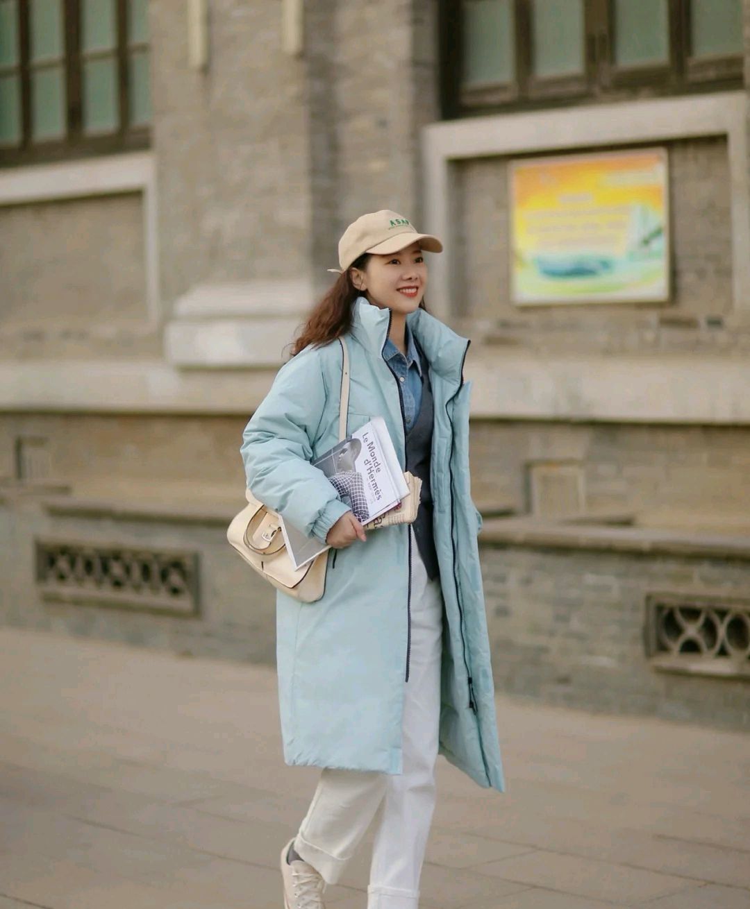 其实有时候简简单单的服装穿搭更有精致感,就好比这位时尚博主所穿的这套服装,不管是羽绒服还是裤子都是很简约的设计,但搭配在一起却让人眼前一亮。