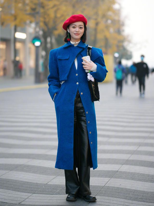 为了降低亮色大衣的驾驭难度,我们要优先选择高饱和度、低明度的亮色,比如砖红色、藏青色、深蓝色等,不仅能把自己衬得更有精气神,也不会显得整个造型太过轻浮。
