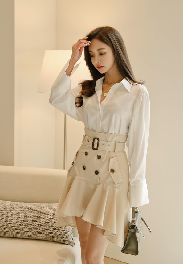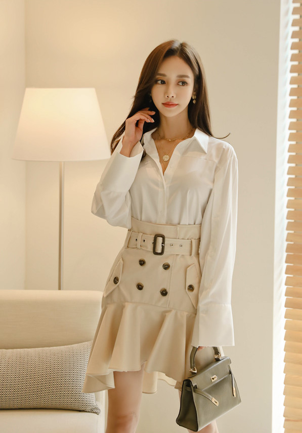 孙允珠ol职业服装穿搭 孙允珠爵士炫白衬衫+一片裙 完美诠释职场