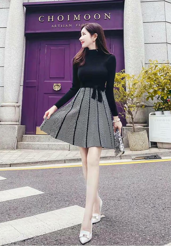 秋冬怎么穿搭显气质?黑色内搭A字系带针织连衣裙 优雅又有气质(3)