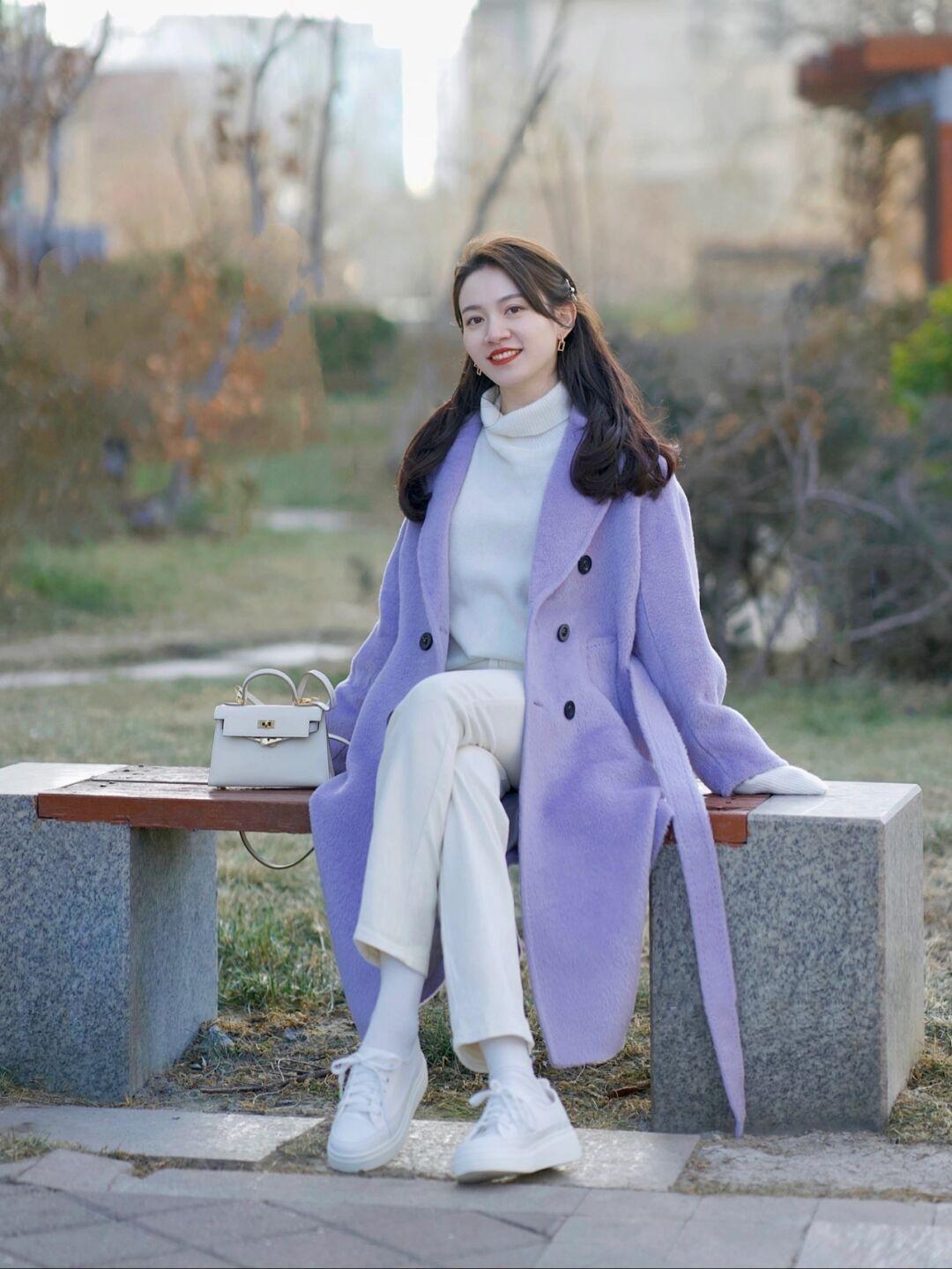 首先为你介绍的是一件紫色的大衣,这个颜色独特温柔,受众人群广泛,不管是20岁还是60岁都能穿,没有年龄上的限制,它的深浅代表了它的风格,淡淡的紫罗蓝色梦幻温婉,而深紫色神秘高贵,都不会太显黑,你可以自行进行尝试,收获的效果或许很完美。冬季气质穿搭指南,大衣搭配高领毛衣温暖优雅,高级时髦又好看!