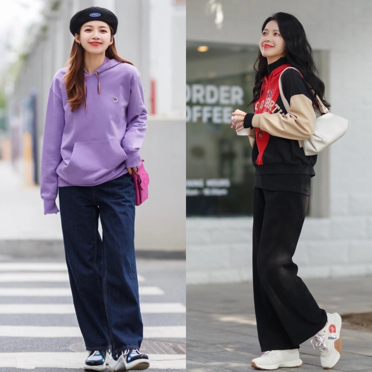 最后要推荐的,就是阔腿裤和运动鞋的搭配了。这组搭配也算是比较常见的组合,能轻松遮住腿上的赘肉,对腿粗的姐妹们十分友好。可阔腿裤和运动鞋的搭配太过于常见,有极高的撞衫率。