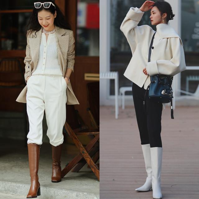 如果想要打破冬日的萧瑟感,那肯定是选择白色中筒靴;如果想要穿出复古气质感,那棕色、咖色会更适合你;总之,你喜欢什么风格就选择什么颜色,但黑色最为保险!