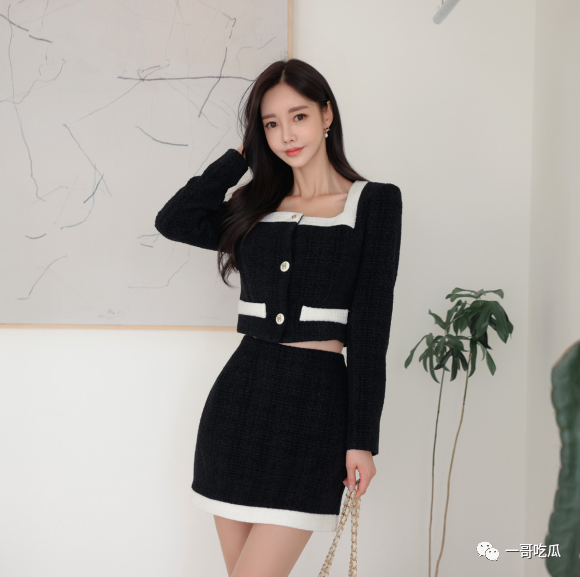 孙允珠超短半身裙搭配美图 孙允珠螺旋纹络花呢衣裙 小露蛮腰很性感