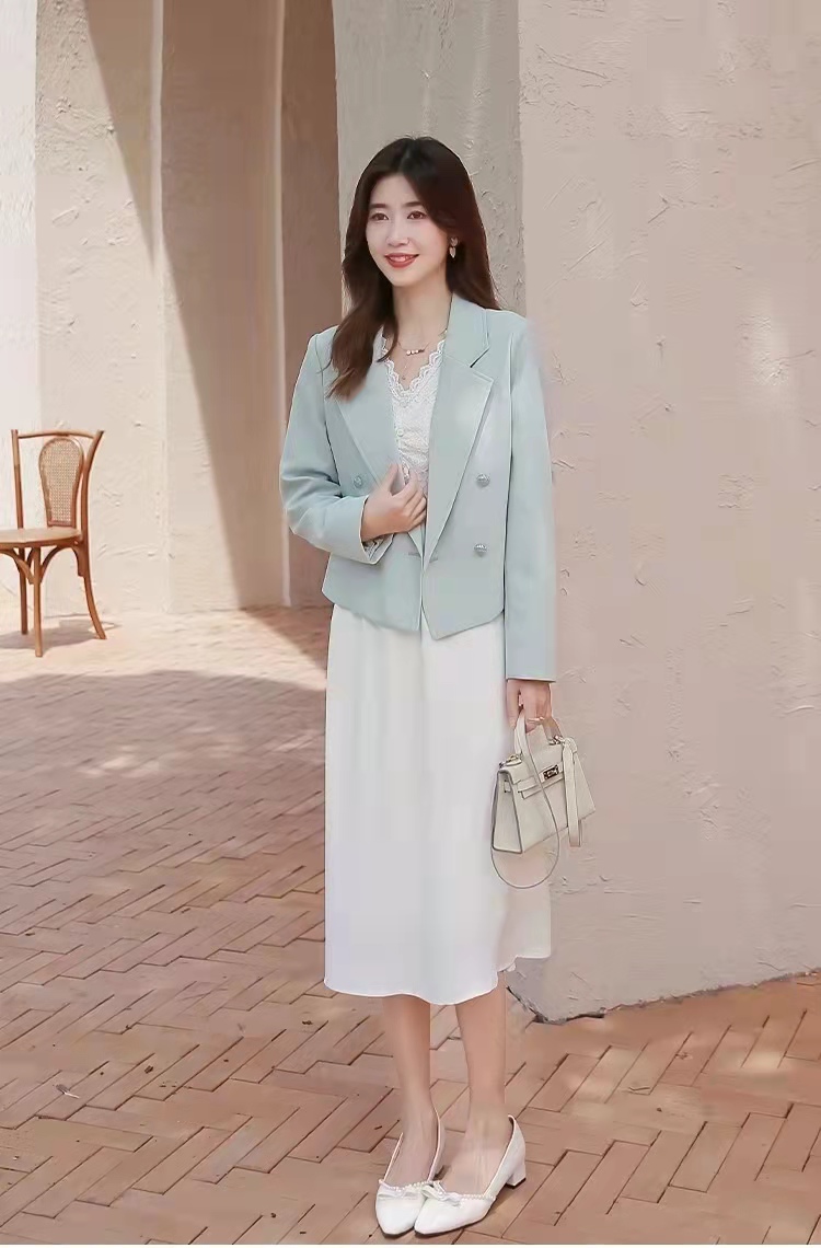 小西装外套的穿搭很是常见,但清新淡雅的糖果色小西装外套,不知道大家穿过几次,如上图中色调素雅、颜值很抗打的浅绿色小西装,内搭一条纯白色的连衣裙,简单的搭配尽显女子温柔与知性的一面,职场上班穿刚刚好,更能够流露出浓浓的女人味。