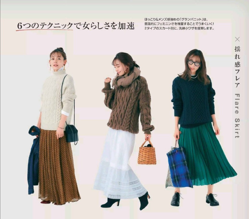 直接单穿一款针织毛衣时,一定要注意它的宽度运用不要夸张,但也不能过分狭窄,把身材包裹得太紧,会把身材瑕疵放大,松弛有度,才最容易展现出优势,配合过膝半身裙,遮肉又容易提升气质。