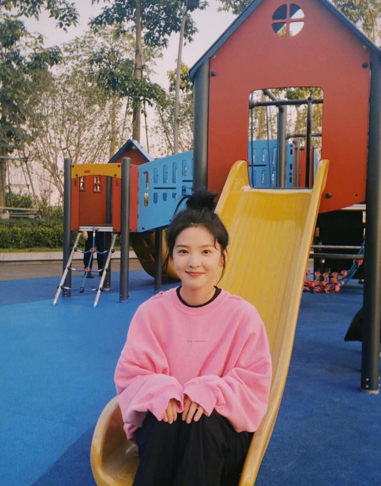 粉色系的单品只要选对,就能穿得相当日常,随性百搭的卫衣因为软糯的粉色而变得更甜美减龄,黑色的内搭也让粉色更为朴素低调。再配个可爱丸子头,谁看了不得喊一声绝。完全就是邻家小妹妹的feel呀。