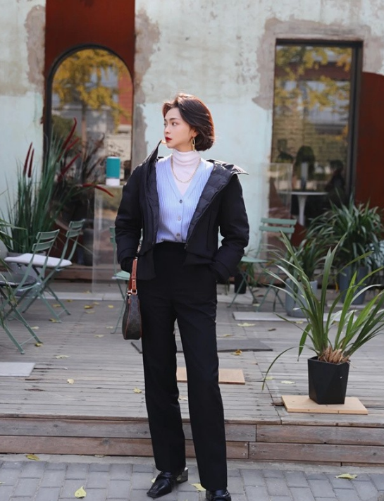 秋冬的棉袄有很多款式,相比于长款的臃肿,短棉袄不仅款式更时尚,穿起来也更显得轻盈。因为他们的长度大多都在腰部以下,胯部附近,刚刚好可以利用衣摆遮住你最显大的腰跨部分,再利用下装拉长你的身形,整个人就不会太过显矮。