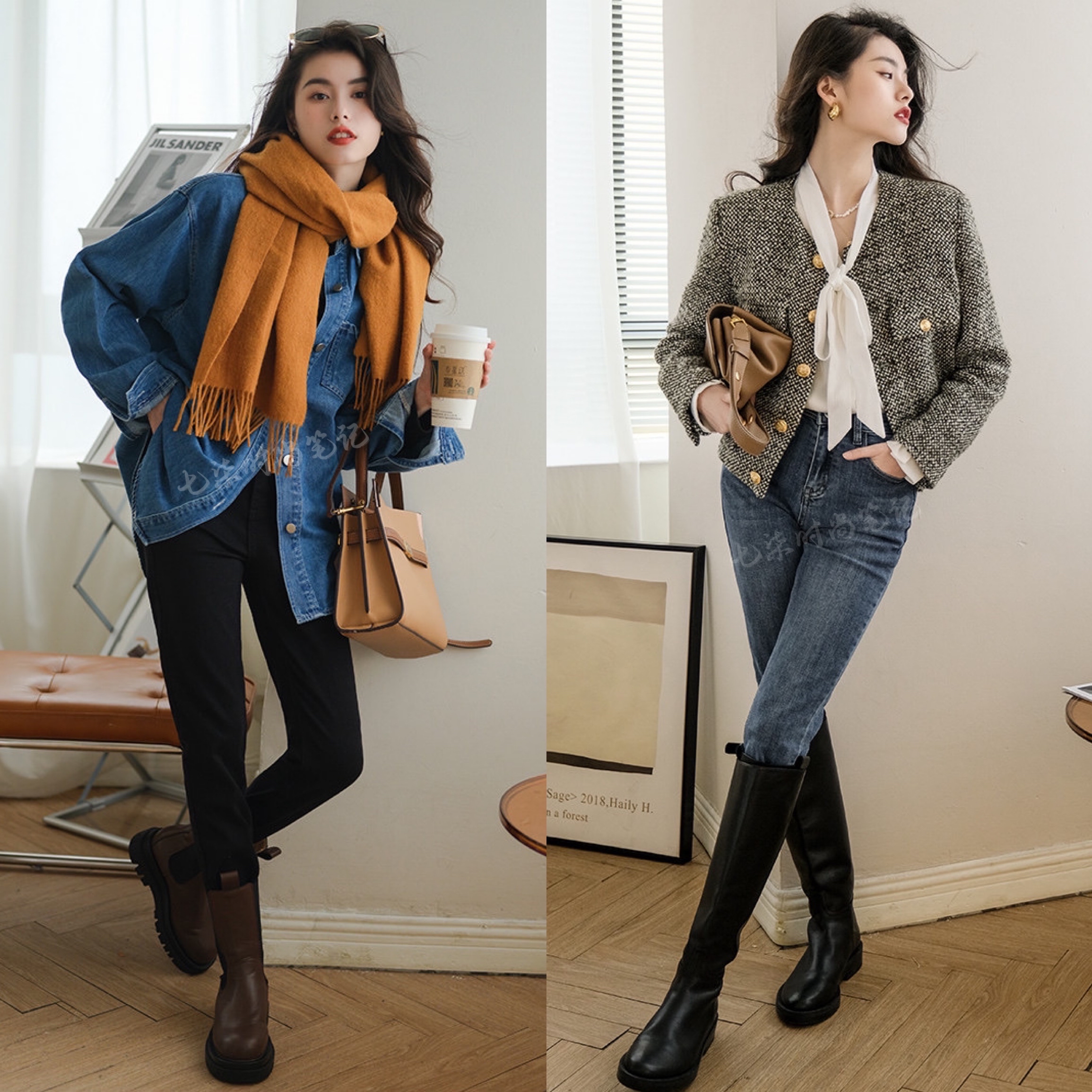 如果觉得小香风外套、西装外套都有点正式,日常穿搭更喜欢休闲随意的风格,青春又带点叛逆感的牛仔外套也是个不错的选择。
