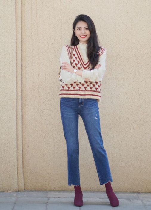 毛衣和牛仔裤也是一组非常合适的拍档,小白都可以利用起来,就像博主用一件简单的毛衣去搭配上高腰牛仔裤,修饰了她的身材比例,看上去很显气质,约会或者是日常都可以穿,会很好驾驭。