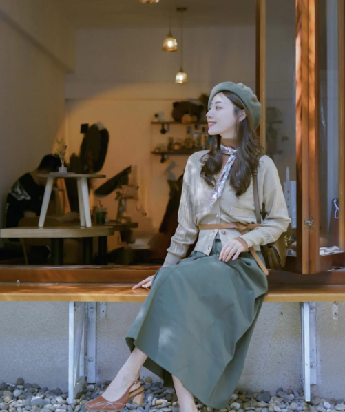作为内搭的连衣裙,本身在款式上不要显得太出挑,避免内搭抢去外套的风头。所以我们在选择内搭连衣裙的时候,可以选择这种纯色的设计,可以选择灰色,白色,米色,肉桂粉等低饱和度的颜色,又显得温柔也很大气。