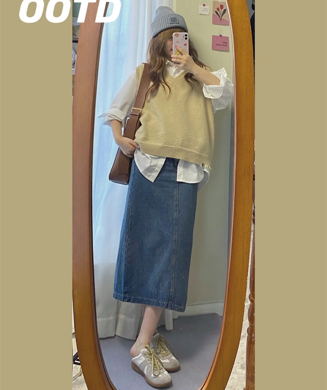春天牛仔半身裙配什么上衣好看?配色深浅结合 低调又不惹眼!(3)