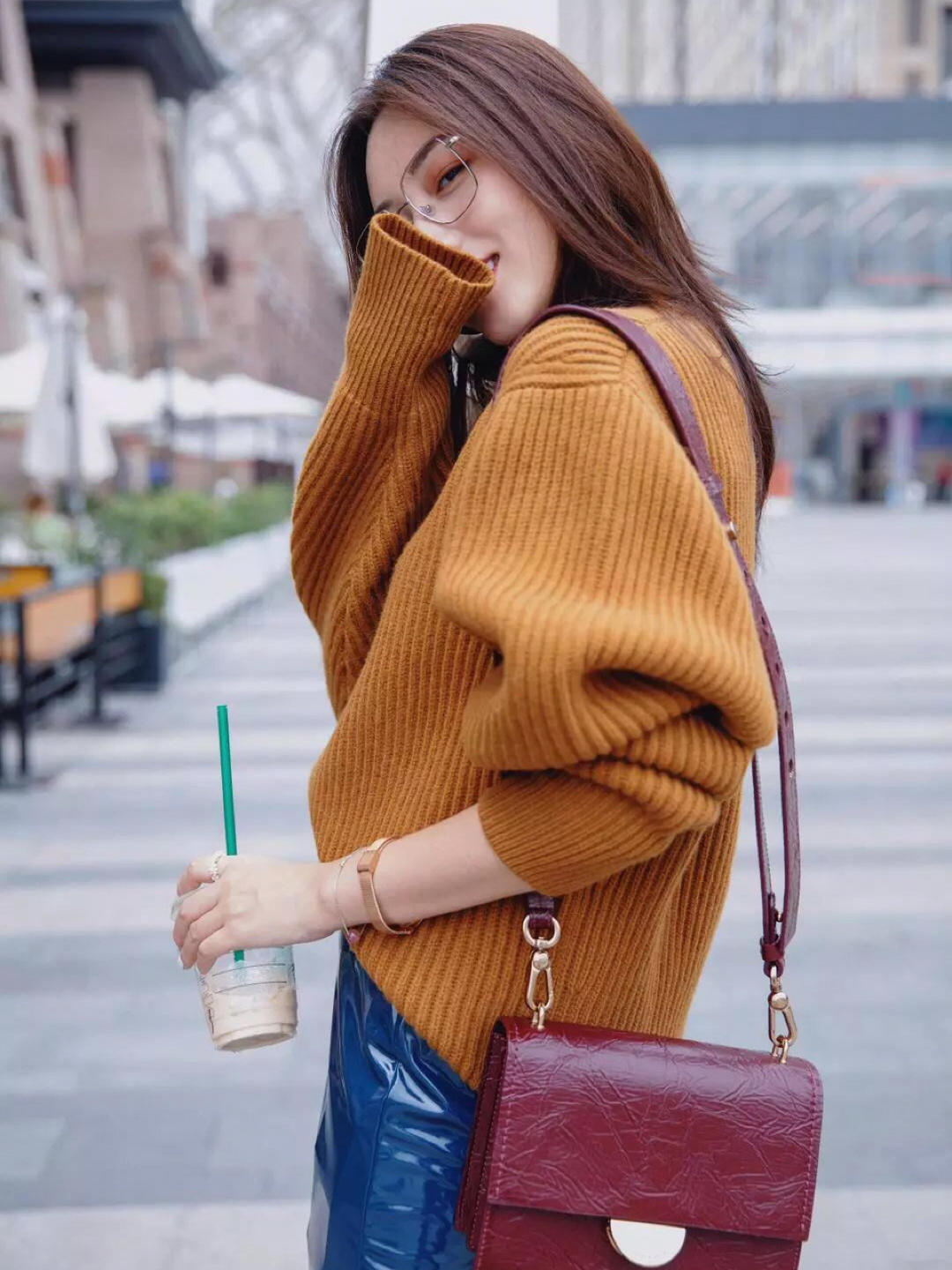 焦糖色毛衣结合了宽松的设计,穿在身上遮肉效果特别好。成熟知性的女生可能很喜欢大地色系,而它融入毛衣里面更能凸显高级感。而焦糖色属于这个色系里面色彩饱和度相对而言比较高的,可以衬托的皮肤格外白皙。