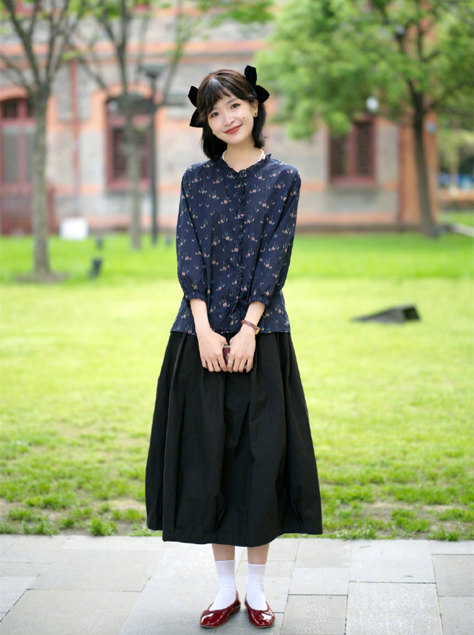 衬衣与半身裙的搭配也是较为常见的组合,同时兼具了职场的干练与半身裙的柔美感,不过正因如此这座搭配太过于常见,有极高的撞衫率。为了避免撞衫的尴尬,我们可以多尝试带有印花元素格纹元素的衬衣,搭配设计感强一些的半身裙。在营造出繁简配色反差的同时,又能加强设计感,保证让你收获超高回头率。