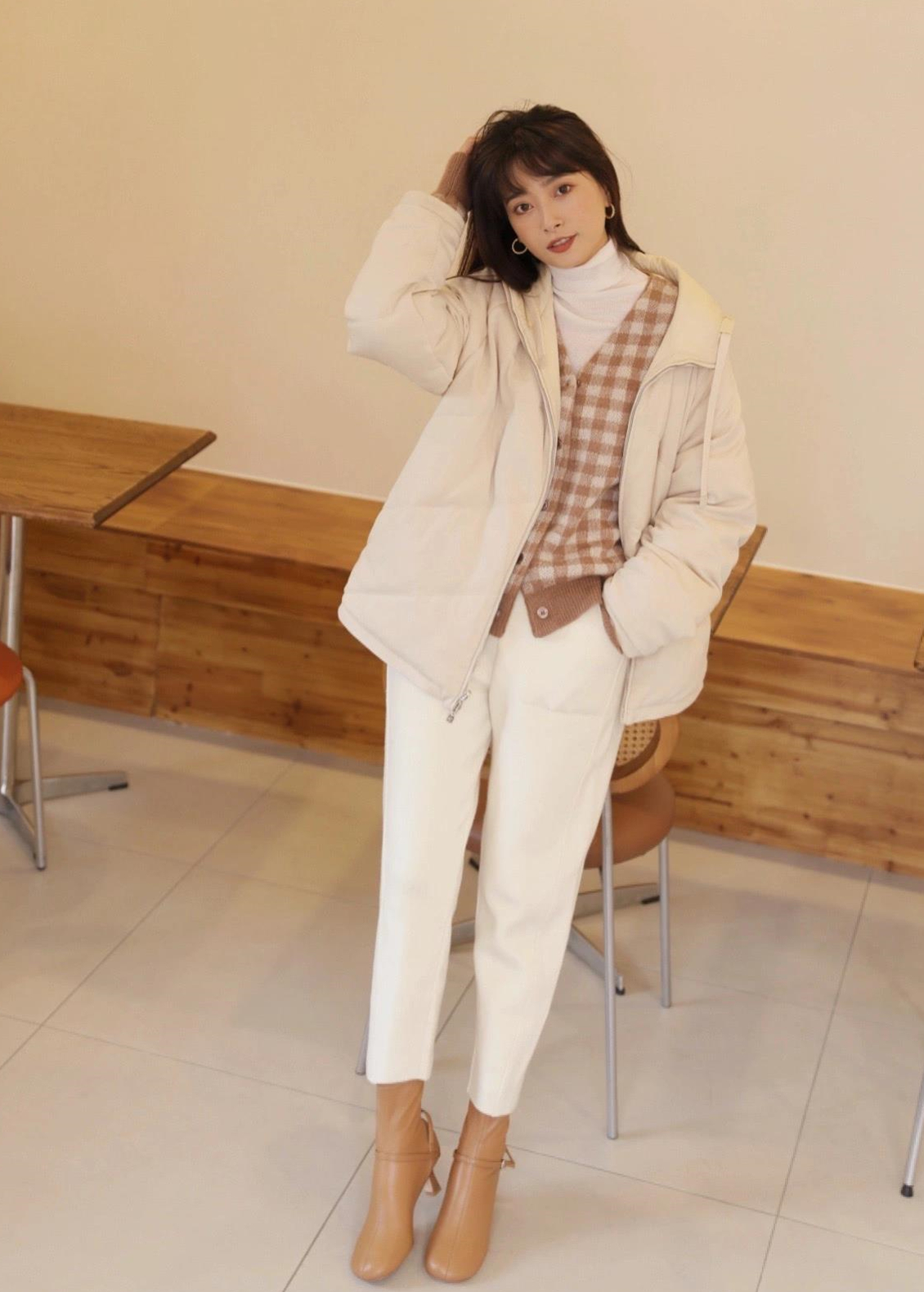 不过这组搭配太过于常见,要想穿出让人眼前一亮的效果,那么不妨借鉴下图中的这种白色阔腿裤和大地色裸靴的组合,在稳定气质的同时又能提亮造型,秒变街头一道亮丽风景线。