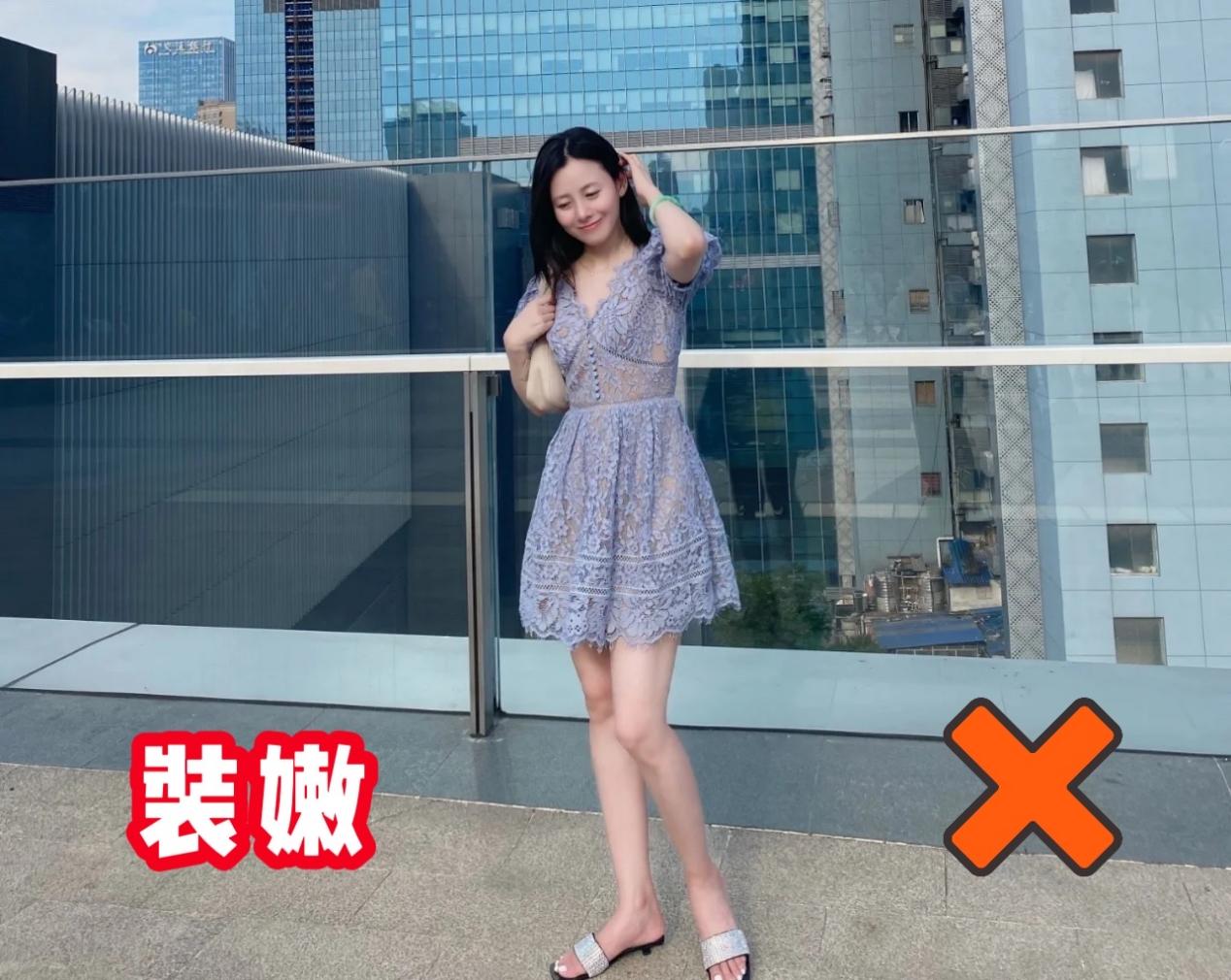 比如说蕾丝连衣裙,尤其是这种微透的面料,短款的蕾丝裙,无法展现出少女的甜美感,相反给人一种扮嫩装嫩的感觉,慎选!