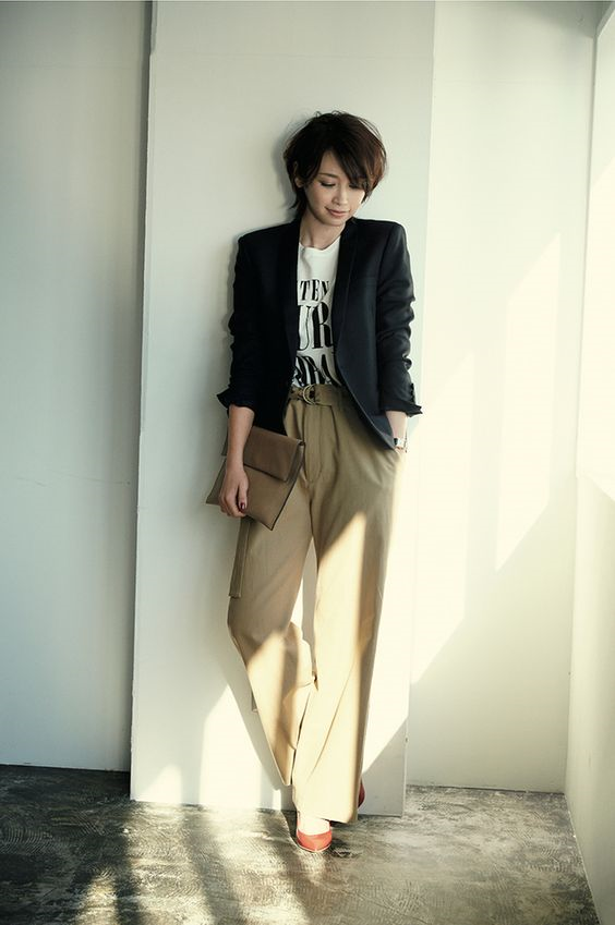 职场中的搭配,是少不了高跟鞋的,黑色的高跟鞋可以说算得上是经典款,但是不建议经常穿这样的鞋子,可以尝试棕色的款式,搭配西装外套和T恤,能够打造更加个性的职场风格。