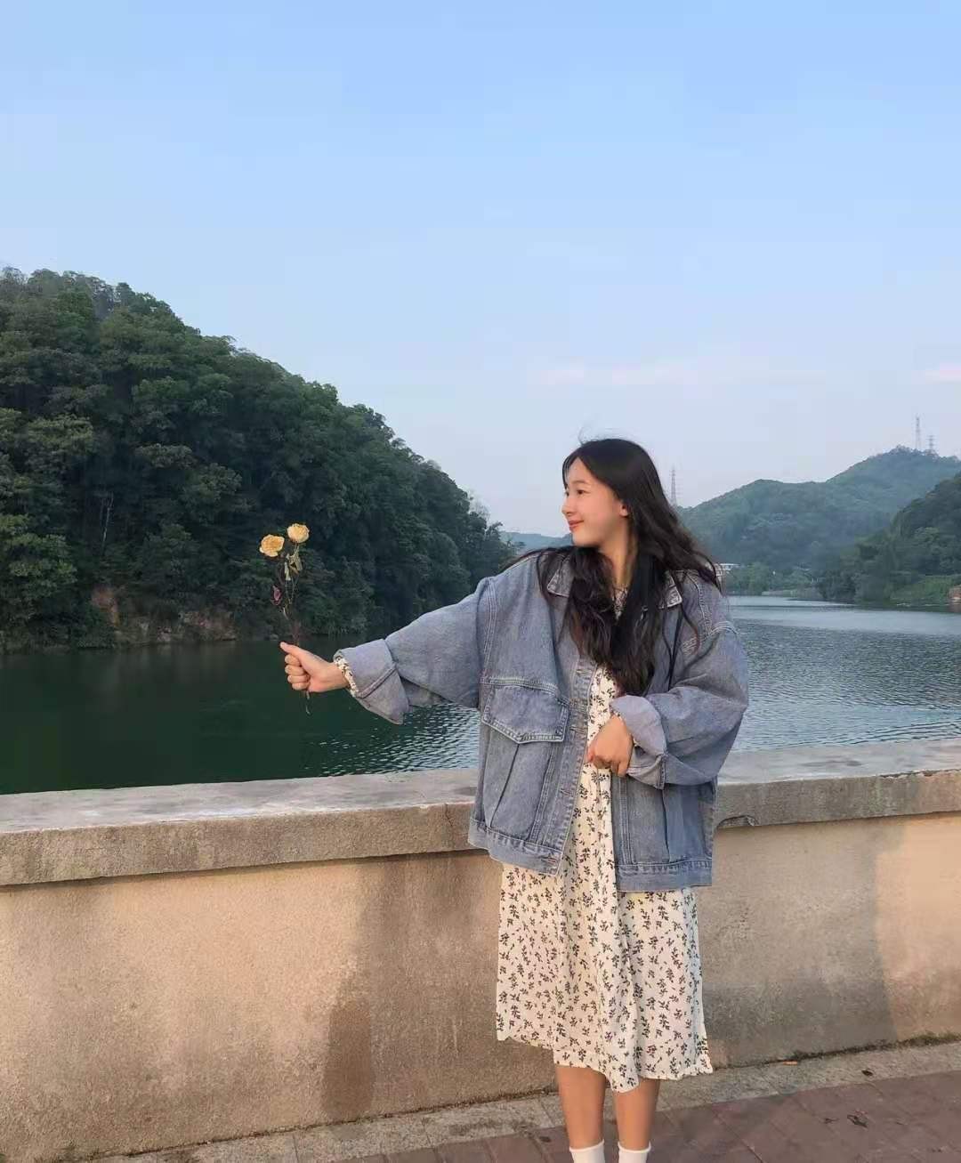 搭配思路四:牛仔外套+碎花连衣裙