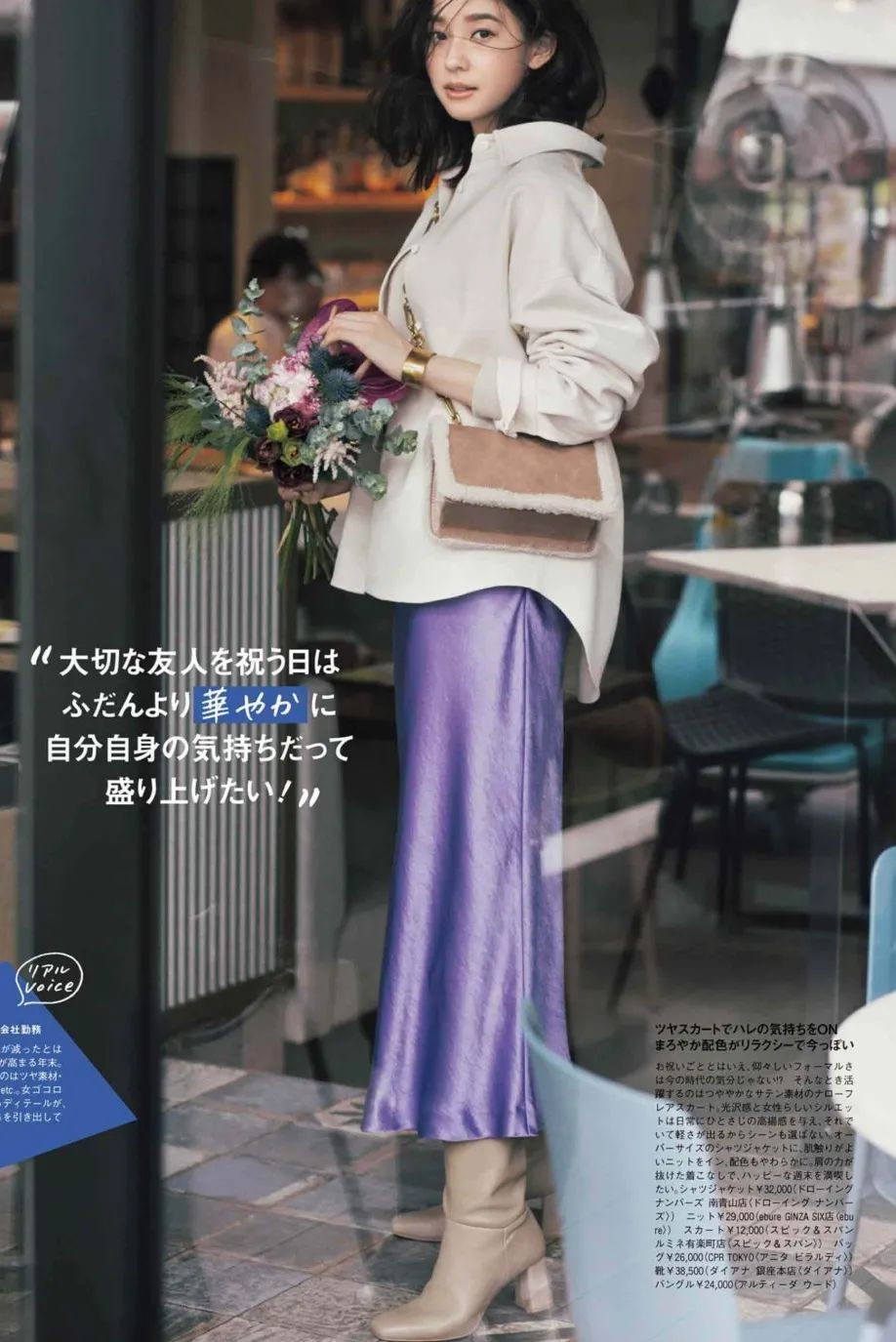 挑选裙装时,材质是大家关注的重点,建议你可以在今年尝试用这种缎面的材质,缎面裙装的搭配更加贵气,充满着高级感,而紫色的裙装又比较浪漫,很适合成熟女性哦。