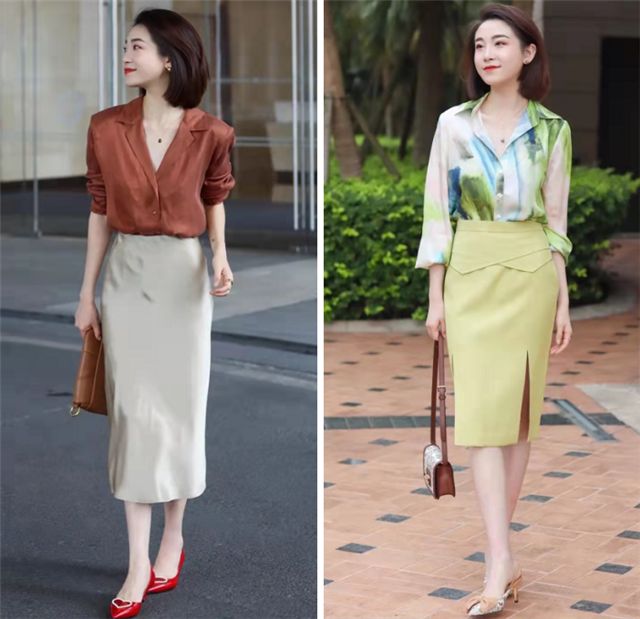 如果身材比例出挑的话,你可以用半身裙搭配上短衬衫,包臀裙装的搭配也是极其显身材的,有利于凸显出你的腰臀比。