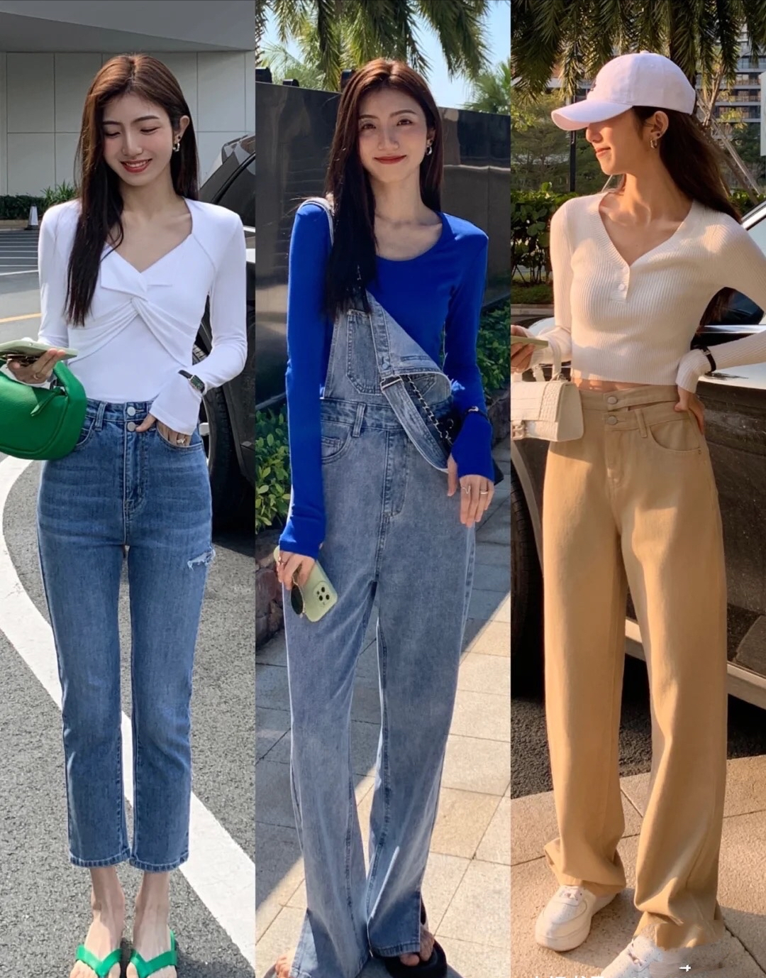 这件上衣和裙子是一个风格,穿起来满满的女人味。假如你喜欢更加减龄的纯欲风,用蓝色牛仔裤搭配更有青春感,还能撩人于无形,很适合约会穿!