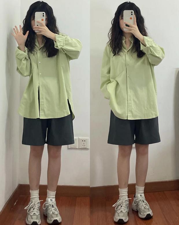 在春季,又怎能缺少生机呢?所以嫩绿色系的单品,自然能俘获不少小仙女们的心。比起白色衬衫,今年春季你更应该给自己入手一件嫩绿色衬衫,说实话,像这种饱和度那么低的色调,也太显肤色了。▼