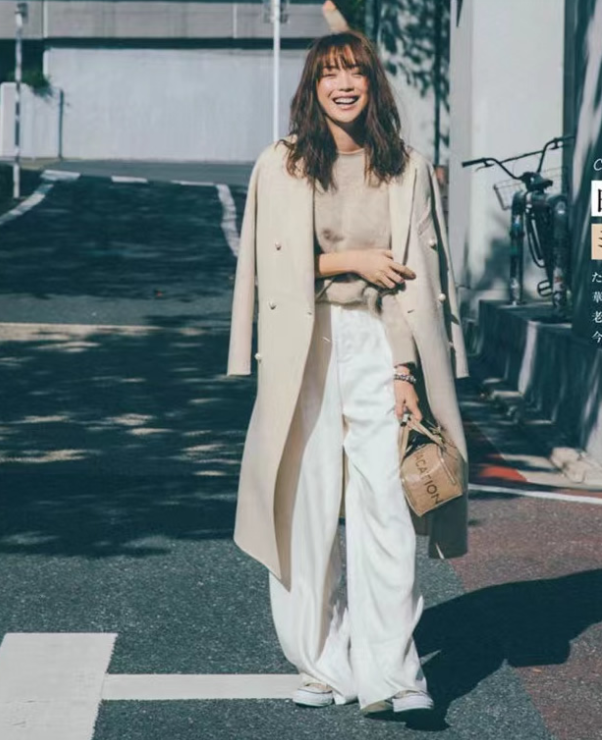 白色其实算是一款基础色,我们如果想把这种基础色穿得好看又有质感,相邻色系搭配反而是个不错的选择。比如白色搭奶白色,搭杏色,搭灰色等相邻色,整体色系循序渐进,不仅让穿搭更有一体化,也会让白色系穿搭显得更为大气。