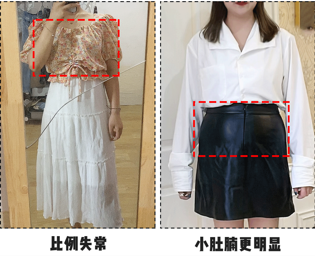 特别是对于上半身肥胖、肚子有肉的女生而言,提高了腰线反而会让身材比例失常,看起来总感觉哪里怪怪的,虽然也有一些显高作用,但显胖的效果反而更明显。