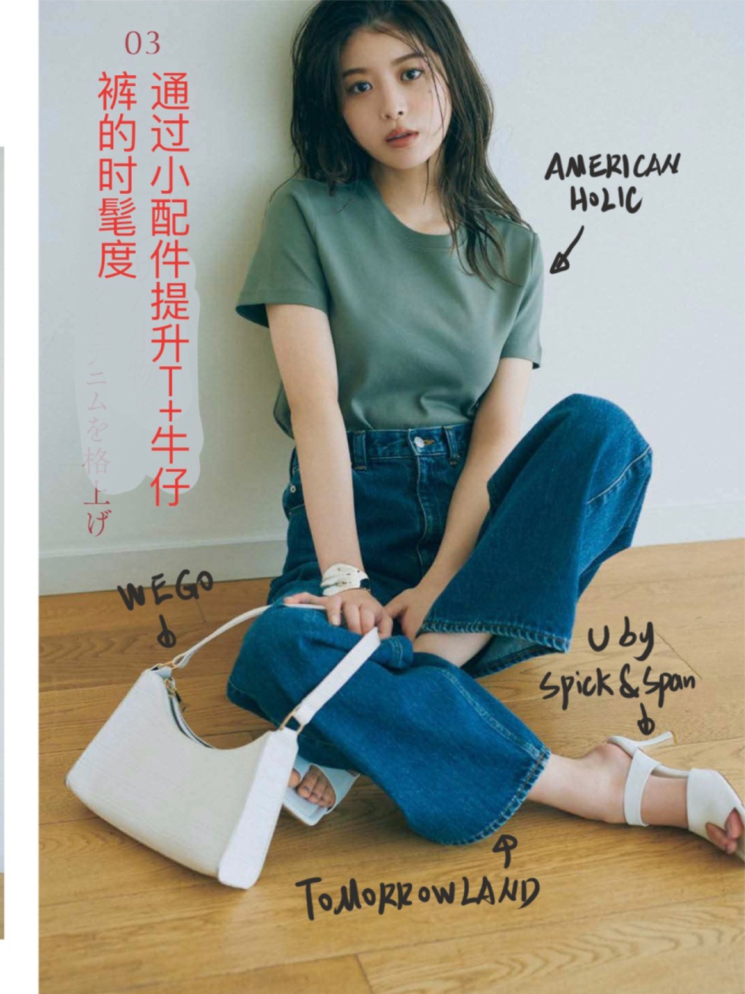 和高肩线的T恤搭配在一起,无论是款式还是风格都不会令人失望。甚至在穿搭的时候更容易突出休闲感和减龄范。