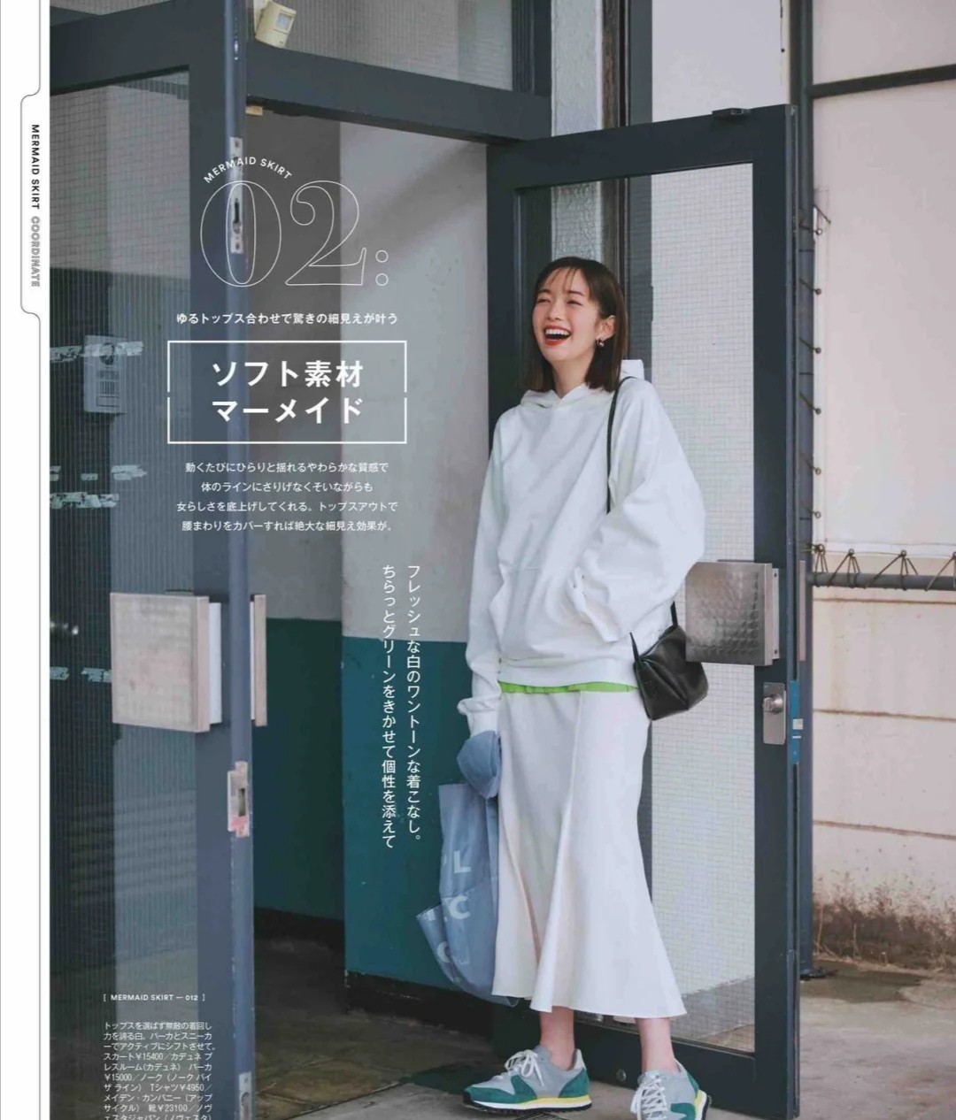 和条纹上衣一样拥有减龄优势的单品并不多见,连帽卫衣也属于其中的一份子。以这件白色的连帽卫衣为主,可以感知这种颜色的宽容能力和包容性。清新的颜色带来纯粹的美感,简约的版式构造舒适的穿衣体验。搭配同色过膝裙,运用展现优雅气质的裙装单品,冲破卫衣的中性感。