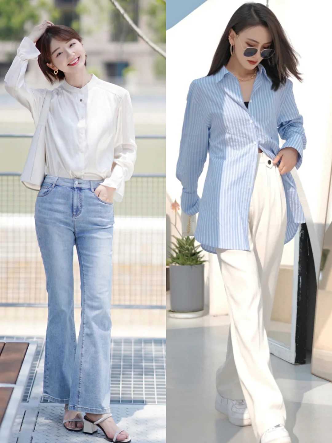 夏天穿衬衫的女人最有品味 初夏女生衬衫里面穿什么好看?(5)
