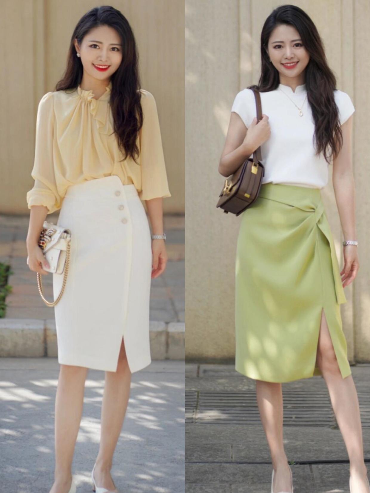 包臀裙不同于A字裙,它的优点在于能很好的包裹穿搭者的臀部曲线,从而修饰腰臀比,最适合梨型身材的女性,也是职场lady的心头好。因为它不仅能最大程度的展现出女性的气质美,还能散发出一种禁欲风的气质,特别适合与衬衫搭配,给人以都市丽人的既视感。
