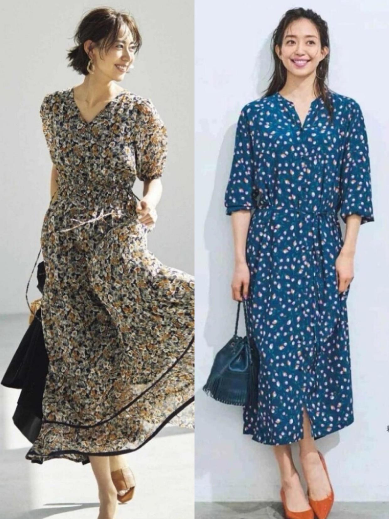 印花连衣裙的设计感比纯色款更强,但大家在穿搭时也要注意细节。整体最好有一个明确的主色调,这样不会显得花里胡哨,也会给人一种有迹可循的规律美。黄黑皮可以试试深黄色、深蓝色这些显白不挑人的颜色,不会显得单一,也很有春天的气质。