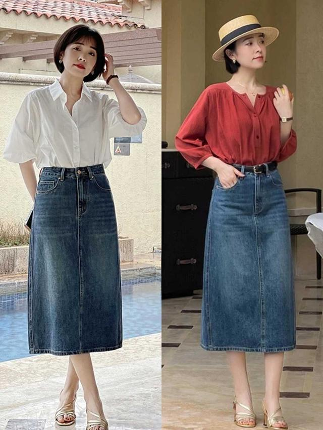 夏天可以选择的裙装太多了吧,你们也可以尝试用牛仔半身裙凹造型,这会比一般的薄纱或雪纺裙装看上去更个性,就像博主用这种衬衫配上牛仔材质的裙装,看上去特别洋气,也很简单,然后再通过用塞衣角的方式打造出纤细的腰线,怎么看都很洋气。接着搭配上一双高跟鞋更能够诠释出女人味,想要增高显瘦的你一定要试试。