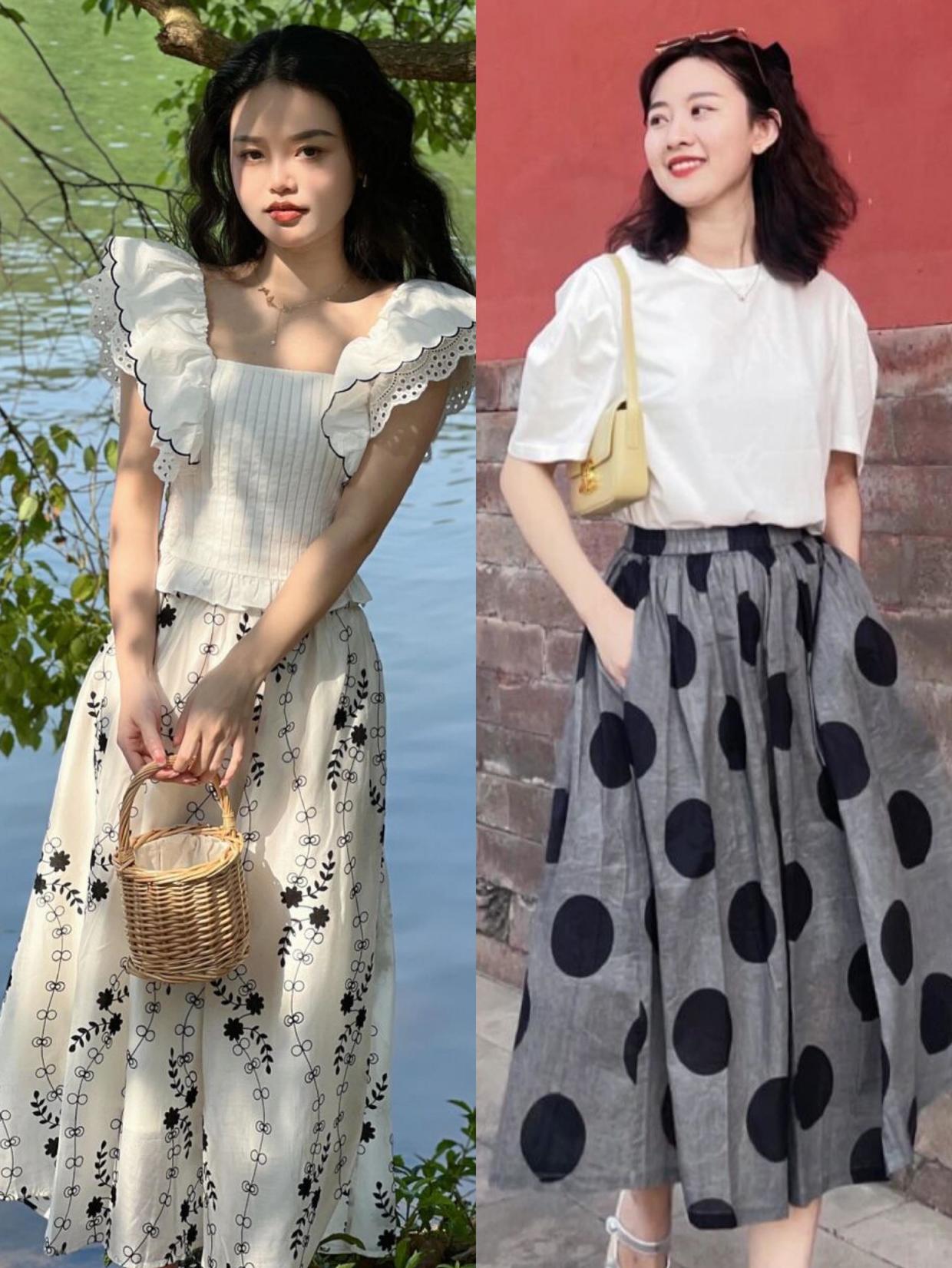 印花半身裙胜在设计感强,它可以有很多样子,毕竟印花款式众多,你完全可以选择自己比较喜欢的风格。如果不想看起来太过花哨,就选择以一个主色调为底的半身裙款式,这样不管在它的基础上点缀什么印花,都不会显得杂乱,最简单的是黑白款式,百穿不腻。