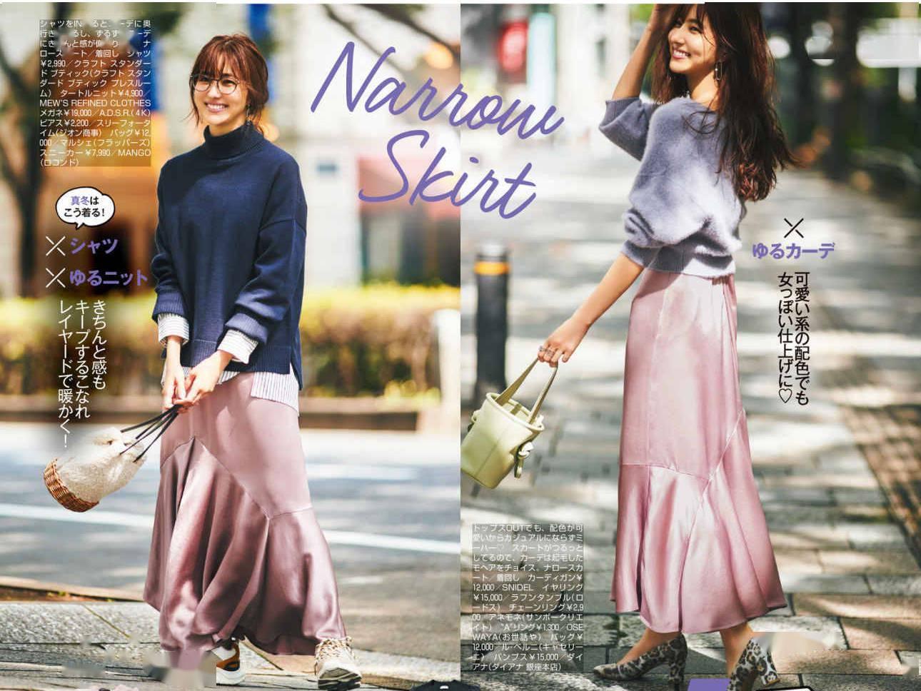 缎面材质自带光泽感,细腻柔软,看上去非常有高级感,与休闲慵懒的针织衫组合,可以称得上优雅女人的标准搭配。如图这套,上衣选择了浅灰色针织衫,与轻盈垂坠的粉色缎面半裙相得益彰,可爱又迷人。