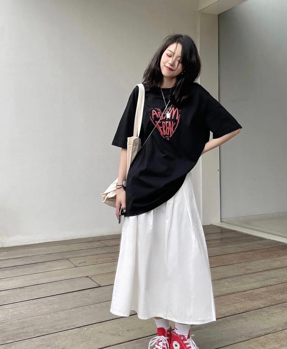 另外要注意的就是选款,其实在夏季大家还是比较喜欢尝试用稍微宽松一些的t恤凹造型,大一号T恤穿在身上会觉得整个人更有气质,而且也会显得气场很出众,像这种大一号的款式穿在身上就能够立马提升自身的时尚感,遮肉显瘦的效果是非常明显。