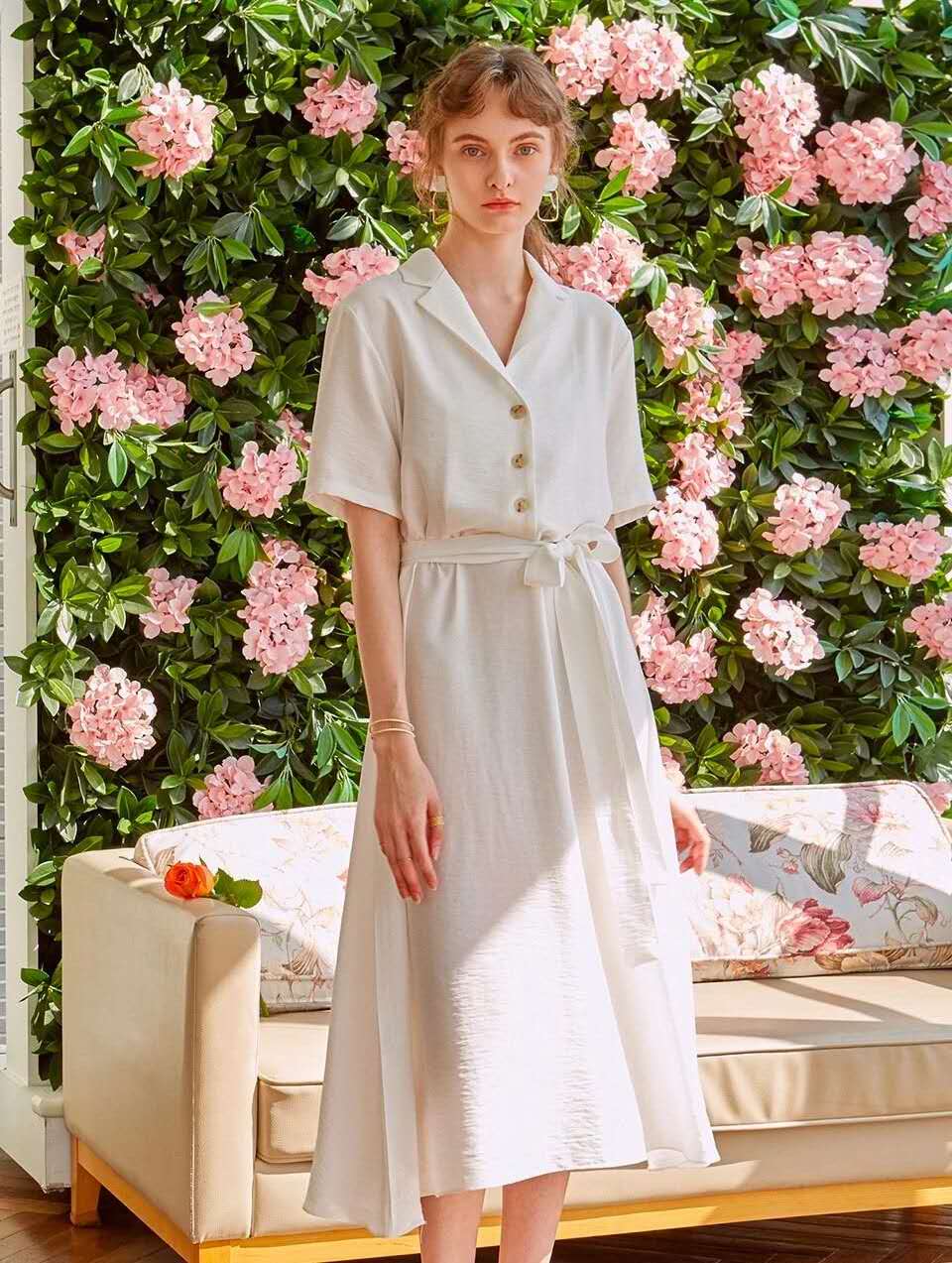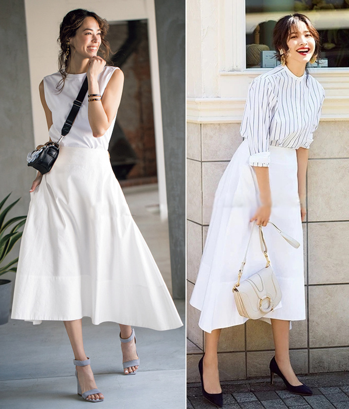 白色半身裙,搭配白衬衫或T恤,记得将上衣的衣摆束进裙腰里,展露出优美腰线,整体清爽又利落。米白色的赫本连衣裙,无需繁花点缀,加上复古翻领设计,简单大方,优雅又很容易驾驭,夏天穿上它,整个人又仙又美,气质清新又脱俗。
